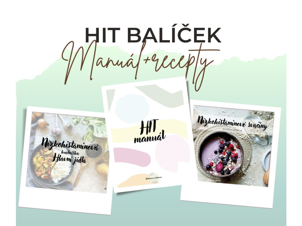 Objevte základní balíček toho, co potřebujete pro snadné a chutné stravování s histaminovou intolerancí – jedním balíčkem a za výhodnější cenu! Najdete v něm HIT manuál a dvě kuchařky - Nízkohistaminová hlavní jídla a Nízkohistaminové svačiny.