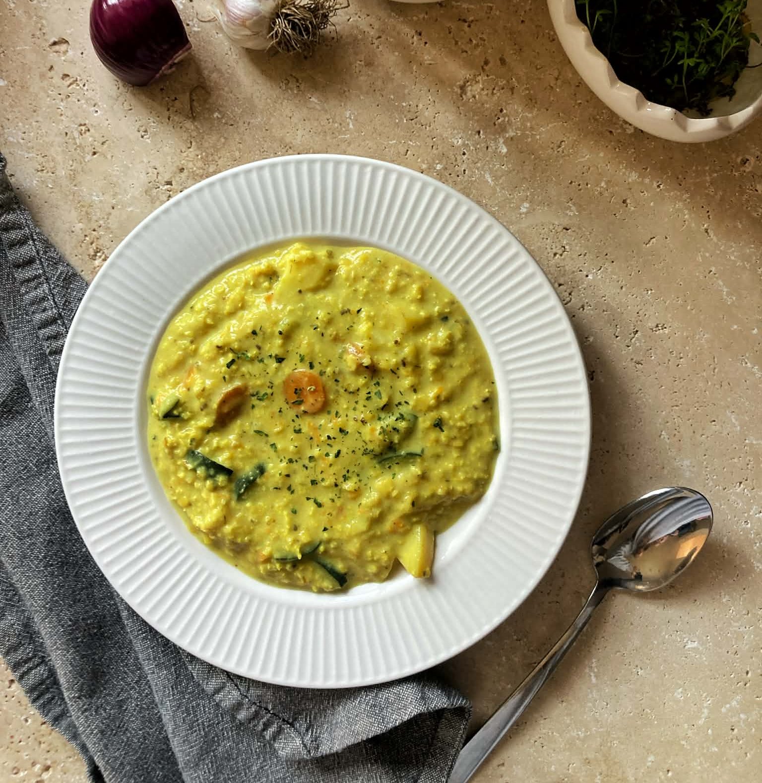Zeleninová polévky s jáhly a smetanou